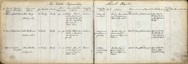 Kibble’s first Admissions Register (1859-1880) provides some insight into the difficulties and poor home conditions faced by some of the boys who were sent here during the nineteenth century: